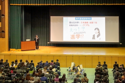 本校は兵庫県唯一の私学の商業高校です。進学実績や教育内容だけでなく、施設・設備も充実しております。是非一度足を運んでいただき、教育環境を見て体験していただきますようご案内いたします。