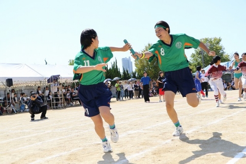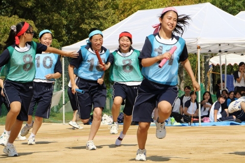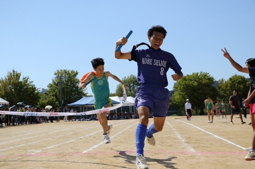 午後からのプログラムは運動部中心のクラブ紹介に続いてクラブ対抗リレーで、走る生徒も応援する生徒も一つになりました。男子の部ではサッカー部、女子の部では陸上競技部が優勝しました。各部とも部員が以前よりかなり増え、熱を帯びた応援など非常に活気あふれるものでした。