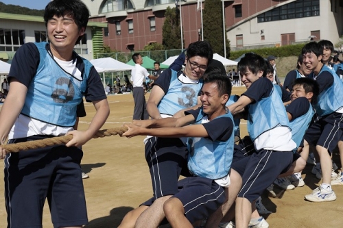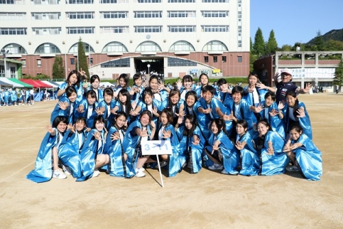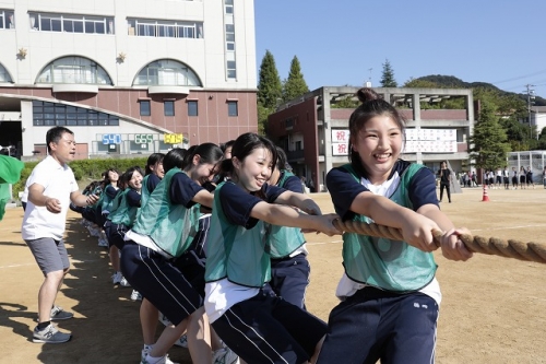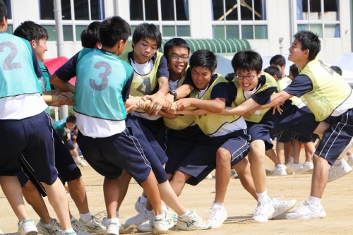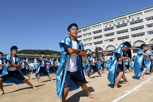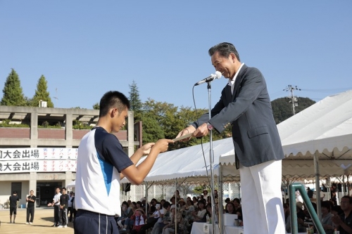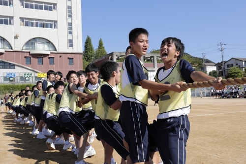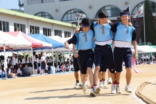 学年対抗での総合成績は、1位1年生、2位2年生、3位3年生と逆転現象の起きた結果となりましたが、全生徒が手を抜くことなく、一生懸命参加していたことがすばらしく、本当に良い体育大会となりました。