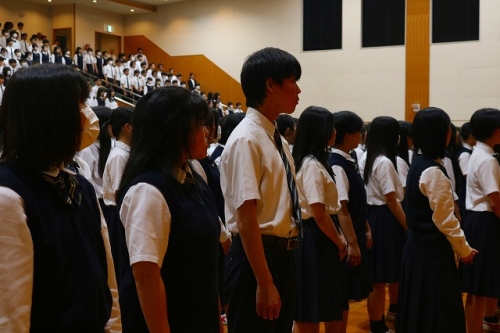 7月17日(水)2・3年生は講堂に集まり、1年生は各教室での映像配信を通して、令和6年度1学期の終業式を行いました。終業にあたって、校長先生から話がありました。各HRでは担任から通知表が渡されました。