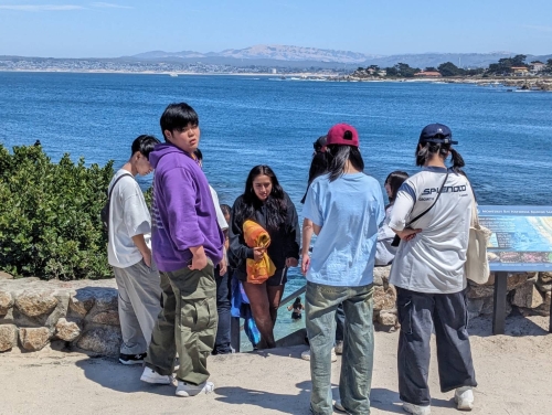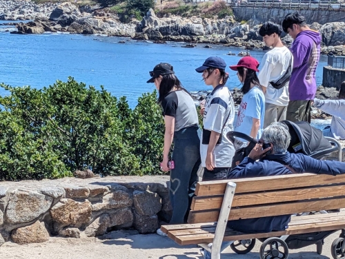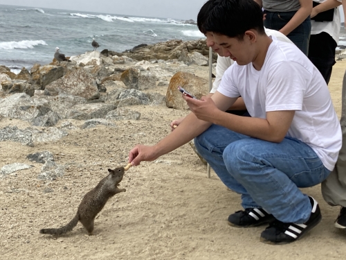 今日の午前中は、初めて英語の授業を受けました。ネイティブのスピードについていくのは大変そうでしたが、日毎に慣れていくはずです。午後はバスで観光をしました。かつての缶詰工場で、今はショッピングモールのキャナリーロウ、17マイルドライブ、ペブルビーチを散策しました。