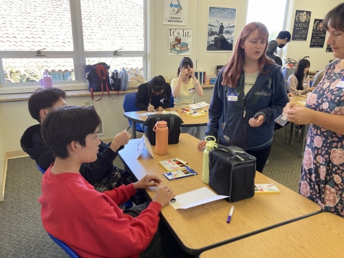本日の午前中も、生徒たちはサンタカタリーナスクールで授業を受けました。日本の英語の授業とは違って話す・聞くを重視したレッスンに興味津々でした。昨日は、自分のホストファミリーに 「モントレイでお気に入りの場所」を聞くという宿題が出ていたので、今朝、教室で順番に発表をしていました。生徒たちはお世話になっているホストファミリーとコミュニケーションをとりながら、自然に英語に親しんでいます。午後からは、それぞれのホストファミリーと過ごします。