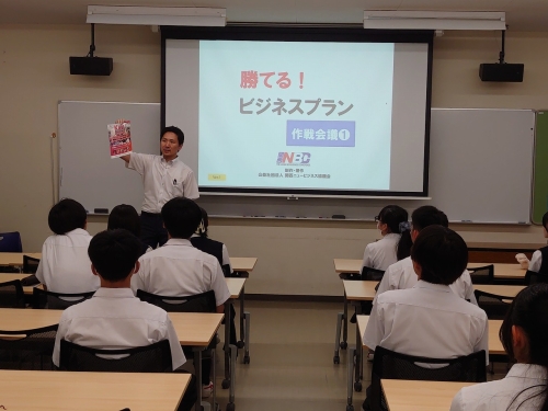 本日(7/24・水)、夏期講習初日が終了後、特進Sコースの1年・2年は、「公益社団法人 関西ニュービジネス協議会」が主催する「関西NBCニュービジネスアワード2024」に参加するため、その事前学習として、ビジネスプランを作成する上で必要なことを学習しました。