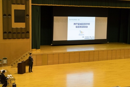 進学説明会では、株式会社ベネッセコーポレーションの方を講師にお招きし、