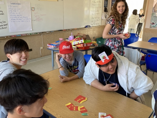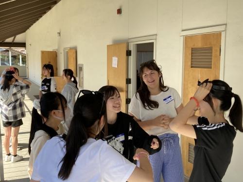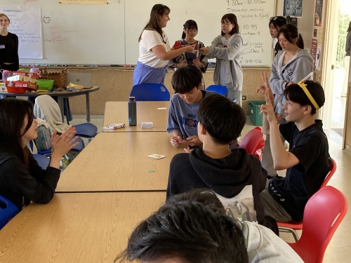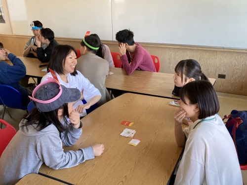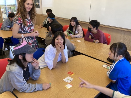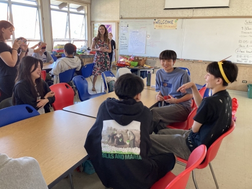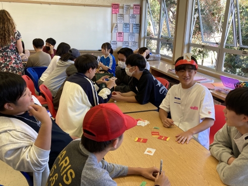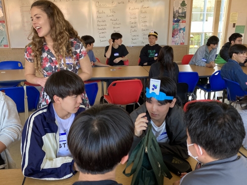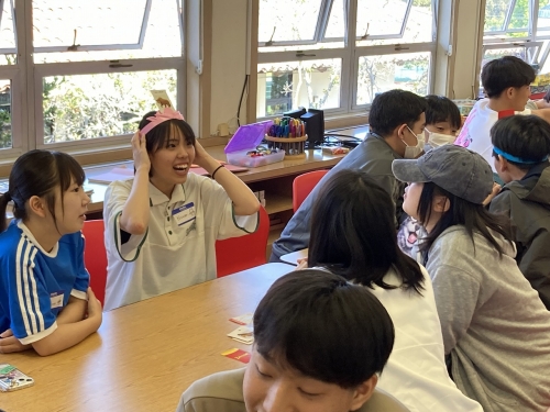 今日の午前中は英語のレッスン、午後は皆んなでスポーツセンターに行きました。英語のレッスンでは、周りの子から英語でヒントをもらって、自分が頭につけたプレートに何と書かれているかを当てるという活動をしました。生徒たちは、楽しみながら、自然に英語を学んでいます。