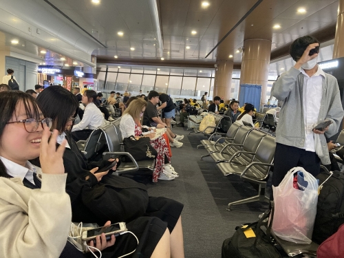 乗り継ぎ先のマニラ国際空港に着きました。遅延連絡は、今のところございません。