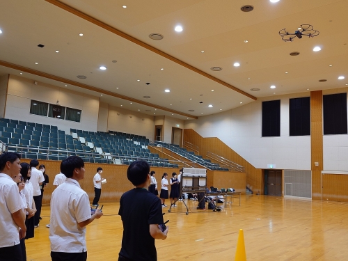 初めてドローンを操縦する生徒も多く、最初は緊張した面持ちでしたが、外部講師の方々の丁寧なご指導のおかげで次第に慣れてきたのか、楽しみながら体験することができました。