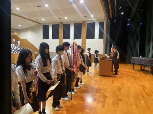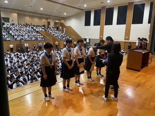 始業式のあとは部活動の成績をたたえる表彰伝達が行われました。