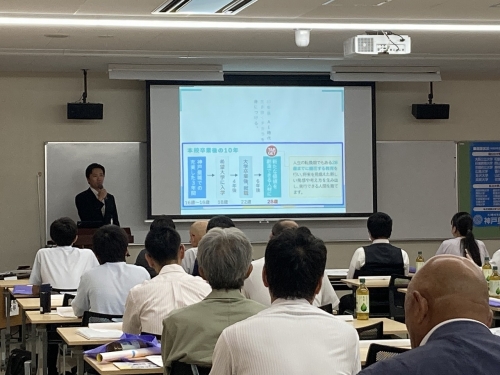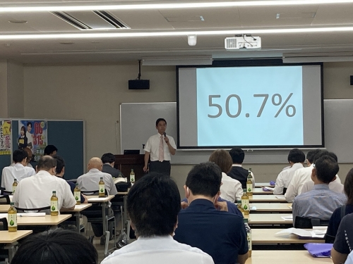 そのあと各地域の学習塾担当者から挨拶をさせていただいたのち、広報担当責任者から、広報の立場からみた大学受験の動向ということで、近年一般入試よりも推薦入試の割合が増加傾向にあるといったお話をさせていただき、会は終了しました。