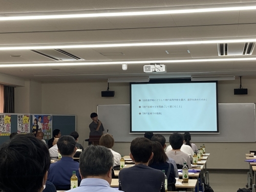 9月13日(金)11:00~12:30までの約1時間30分、学習塾の先生方を対象に令和7年度入試説明会を開催しました。毎年行っているこの説明会は、兵庫県下の学習塾様を中心に、本校の取り組みをより深く知っていただくために実施しています。