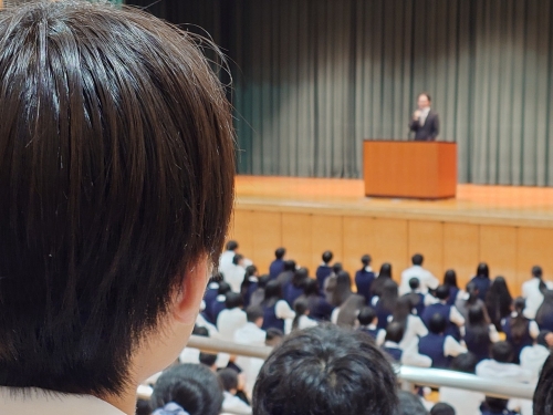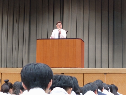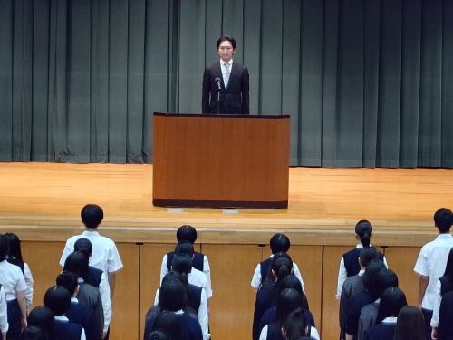 初めに校長先生から、「高校時代の友は一生の友。思い出に残る旅を!」「感謝の気持ちを忘れずに!」「この時期に行う修学旅行には意味がある」などのお話の後、日本旅行の方々や同行していただく写真館の方からもお言葉をいただきました。生徒会長からは「楽しく、実りある旅を!」と、最後に学年主任の松井先生から「仲良く修学旅行に出かけましょう」とお話しで締めくくられました。