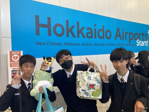 修学旅行最終日となりました。定山渓での最低気温は6℃でした。この日も朝練をする運動部員の姿が見られました。ホテルで荷物を預け、新千歳空港に向かいました。空港ではどの班も1時間ほど買い物を楽しみました。新千歳空港では少し出発が遅れましたが、どの班もほぼ予定通り大阪伊丹空港・関西国際空港に到着し、湊川神社までバスで移動し解散しました。