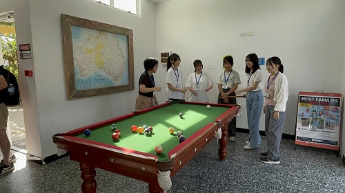 ビーチでの朝の活動を終え、学校に戻るとscavenger huntを行いました。プリントに書いてあるキーワードを探すため学校中を冒険しました。また、休み時間には、卓球やビリヤードなど英会話を楽しみながら過ごしました。各自ホストファミリーに作って頂いたランチを食べ、午前中の活動は終了です。