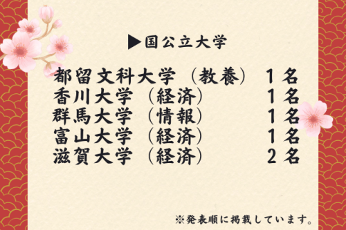 これからも続々と発表がありますが、12月6日(金)現在の国公立大学や私立大学の合格者数を掲載いたします。