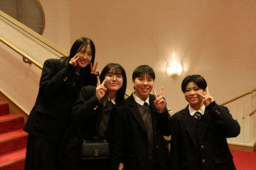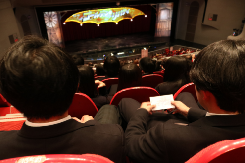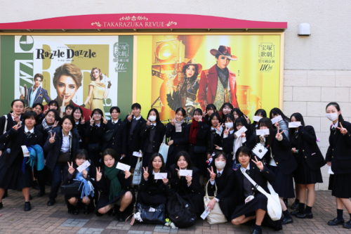 12月11日(水)、2年生の学年行事として芸術鑑賞会を行いました。今回は宝塚歌劇・月組の公演を鑑賞しました。公演は2部構成で、前半がミュージカル・クエスト“ゴールデン・リバティ”。後半が“PHOENIX RISING”というステージでした。「清く 正しく 美しく」を軸に、100年以上もの歴史を持つ宝塚歌劇。華やかで力強く、そして美しい世界観に終始圧倒されながら、トップスターたちの歌唱力や素晴らしいダンスパフォーマンスにも魅了され、多くの生徒が初めての鑑賞だったとは思いますが、とても有意義な、心に残る時間になりました。