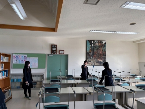 小論文講座などで1年間ずっと使用してきた大会議室やライブラリー、被服室、レクチャー室など、自学自習のために使っていた4教室を中心に大掃除を行いました。