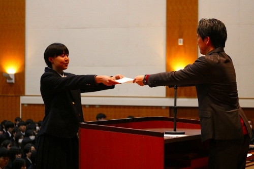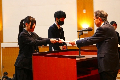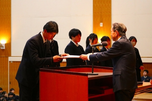 3学期修業式に引き続き、表彰伝達式・壮行会が行われました。表彰伝達式では、各クラブ・個人の健闘に対し、学園長から表彰と労いの言葉がありました。