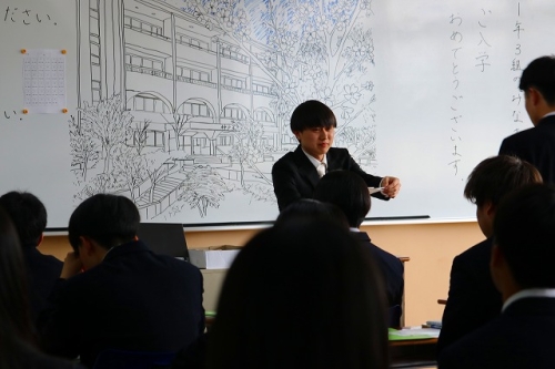 今後の予定は、4月9日(水)に全校生が集まる始業式、10日(木)は課題・実力考査、11日(金)は校内オリエンテーション、14日(月)は避難訓練・学級委員任命式 となっています。明日から本格的に高校生活が始まりますので、入学のしおり・生徒手帳「良志久」・本日の資料等の内容を頭に入れ、良いスタートがきれるようにしましょう。