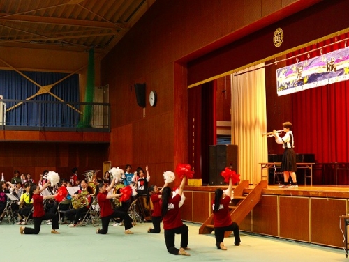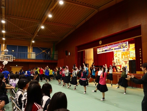 続いて音楽部と女子ダンス部によるコラボパフォーマンスが披露され、生徒も一体となってノリノリで歌ったり踊ったりして楽しみました。