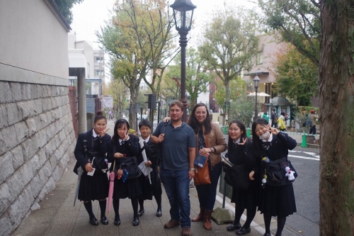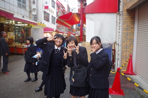 2時限まで授業終了後、各クラス・グループで事前テーマに従い目的地に向かいました。商店街実地調査(板宿・元町・春日野道)、防災研究、観光地(シティーループ)など、創意工夫された発見学習でした。今年神戸開港150年記念「港都KOBE芸術祭」が催されている神戸は、多くの外国人観光客が訪れています。英語でインタビューしたところ、日本語で答えられたり、北野異人館の有名珈琲チェーン店で豆の焙煎・お客対応に新商品をいただいたグループや、霧の六甲山牧場ではアイスクリーム作りに神戸地域人材支援センターふたば学舎(新長田)を案内して頂いたグループもありました。
