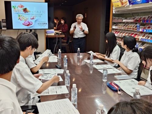 長時間にわたり、貴重なお時間をいただきまして、ありがとうございました。生徒たちも「机上での商業の学び」ではなく、「KOBE 伍魚福」様のお力を借り『本物』に触れることができたと思います。