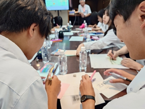 また、夏休み中に行う実演販売を行うことも生徒たちに伝達していただき、その実演販売に向かって「コトPOP」の作成やその作成に必要な「テーミング」について、直接ご指導をいただきました。
