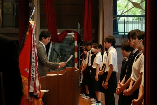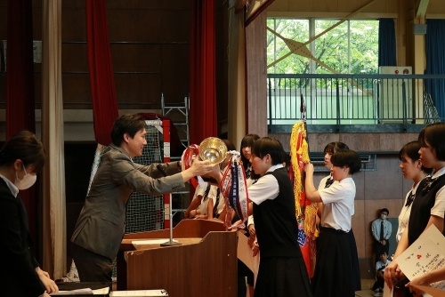 7月16日(水)、1学期終業式に引き続き、表彰伝達式・部活動壮行会が行われました。表彰伝達式では各部活動・個人の健闘に対し、校長先生から表彰されました。