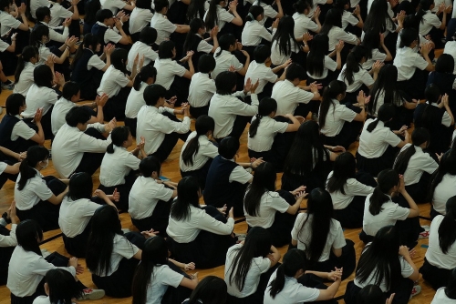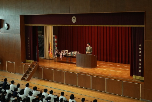 それぞれ全国大会に出場する部活の代表生徒から決意表明、生徒会長による激励が行われました。