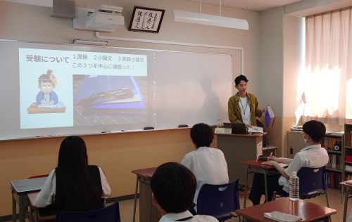 1年・2年にとっては、まだ先のことかもしれませんが、いずれ経験することになる大学受験に向けて、準備できることや大学生になっても今の努力はしっかりと報われることなど、多くのことを学べる機会となるはずです。またそれ以外にも、小論文を体験する時間やディスカッション・面接に触れる機会があり、大学推薦入試に向けての準備を進めていました。
