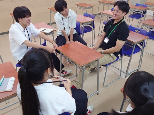 進学合宿3日目の本日7/20(日)は、進学合宿でしかできない「卒業生との懇談」を行いました。「卒業生との懇談」とは、本校を卒業した複数の現役の大学生が、近隣は元より、遠方(今年は佐賀県・山口県・石川県・静岡県など)からも後輩のためにと足を運び、自分たちが苦労したことやこの時期に何をすべきかなど、大学受験に向けての個々の体験を赤裸々に話してくれる時間です。第1志望に合格できなかったことや、当時自分が作成した「小論文ノート」「志望理由書」などを見せるなど、大学受験を経験していない在校生にとっては、非常にありがたい時間となります。