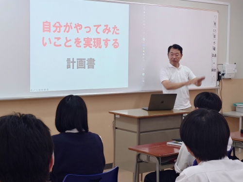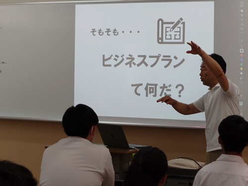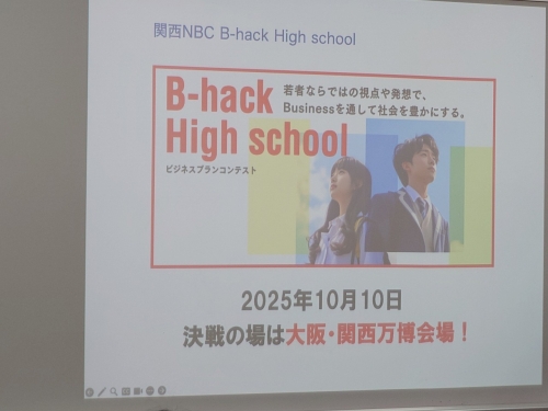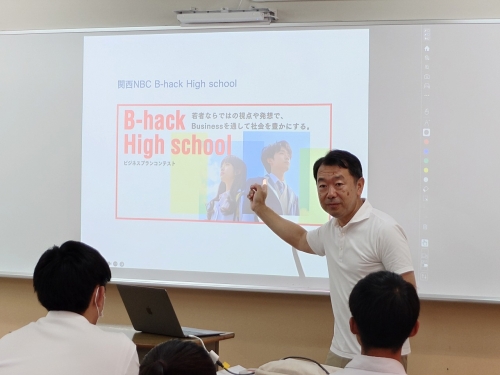 本日(7/23・水)午前中に特進Sコースの1年は集中講義が、2年は前期集中が受講後、午後から「公益社団法人 関西ニュービジネス協議会」が主催する「高校生ビジネスプランコンテスト 関西NBC B-hack High school2025」に参加するため、その事前学習として、ビジネスプランを作成する上で必要なことを学習しました。
