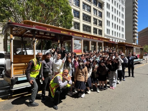 ジャイアンツパーク(Giants Park)、ツインピークス(Twin Peaks)、ゴールデンゲートブリッジ(Golden Gate Bridge)、パレス・オブ・ファインアーツ(Palace of Fine Arts)、ランバートストリート(Lombard Street)など、サンフランシスコの名所を巡り、アメリカの文化や街並みを肌で感じる貴重な体験となりました。途中、ケーブルカー(Cable Car)にも乗車し、街の雰囲気を楽しむことができました。