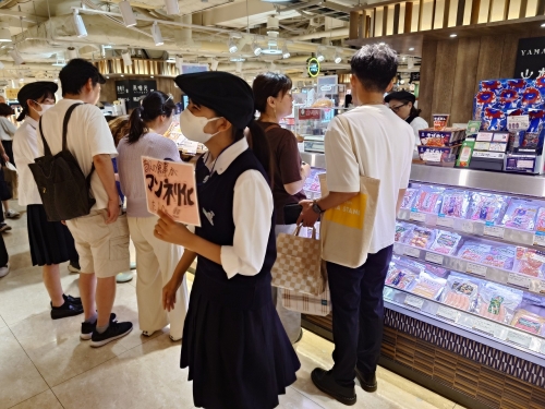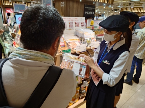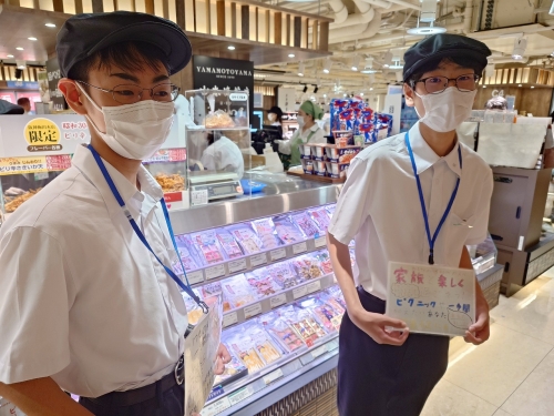 先日8月16日(土)に阪神百貨店B1Fにある『KOBE 伍魚福 阪神梅田店』にて、実習販売を行いました。