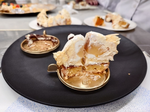 各チームからいくつかの提案をし、すべてボックサン様にて形にしていただき、見た目や大きさ、味や切ったときの断面などを確認しながら、どのケーキを商品化するかを検討してもらいました。