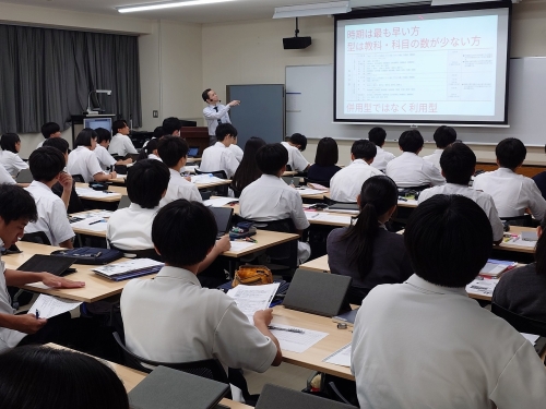 受験生である3年生は真剣そのもので、先生の説明を一言一句聞き逃さないように集中して聞き、メモを丁寧に取っていました。出願に向けて、説明される先生も話す内容も細かく分け、ゆっくりと説明していただきました。