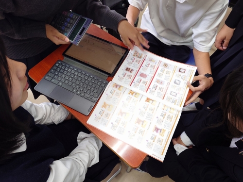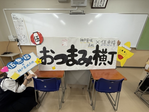 「KOBE 伍魚福」様とコラボさせていただいているチームは、来週11日(土)に姫路市にある「大手前広場」にて、本校生が伍魚福様の商品を販売するのですが、その際、「KOBE 伍魚福」様のどの商品をどのように販売するのかを自分たちで考え、仕入れや価格設定を行い、簡単な売り上げ目標を掲げるところまで行います。その目標を達成すべく、当日のポップや看板も自分たちで作成します。「KOBE 伍魚福」様の阪神梅田店で行った実習販売を思い出して、元気よく、活動してほしいと思います。