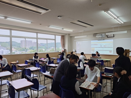 本日(10/3金)に、「KOBE 伍魚福」様、「神戸洋藝菓子 ボックサン」様とコラボさせていただいている各チームがそれぞれ活動を行いました。活動している生徒は全員2年生で、昨日定期考査が終わり、来週月曜日から北海道への修学旅行に出かけますが、その合間を縫っての活動となりました。