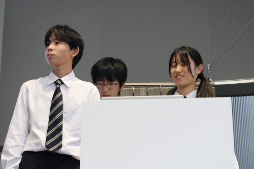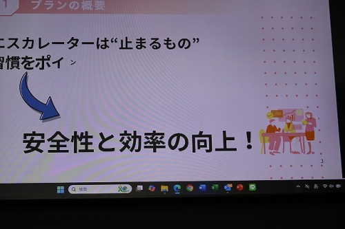 起案者である2年生が修学旅行中であったため、代わりに後輩の1年生が1人で発表をしたり、聞き手を引き付けるにはどうしたら良いか、直前まで3人で役割を決めて各々が試行錯誤してプレゼンテーションをしたり、コンテスト全体でのグランプリ受賞にはなりませんでしたが、その姿はとても逞しく、1年生にとっては良い経験になったことかと思います。