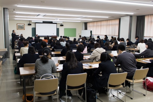 期末考査が修了した6日の午後、大会議室で「36回海外教育研修実施説明会」を行いました。最初に校長先生から「本校の海外教育研修は35年前から実施されています。これだけ続くということは、それだけ過去の本校参加生徒達のマナーが良く、現地の人々と信頼関係が構築されている証拠でもあります。高校時代の夏休みの三週間の体験は、今後の人生に大きく役立ち、視野を広げ、グローバル化に対応できる国際人として成長することでしょう。」との、挨拶からはじまりました。