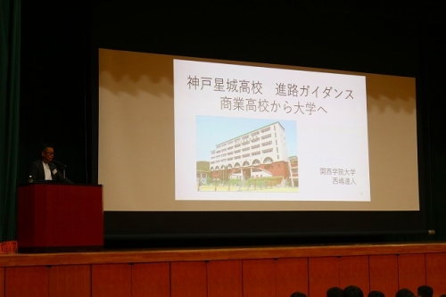 2年生は事前にホームルームで本日の流れや受講の心構えなどを確認した後、「大学進学希望者」「専門学校進学希望者」「就職希望者」に分かれて、各講師の方々より総合的な説明を受けました。