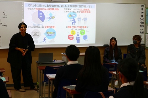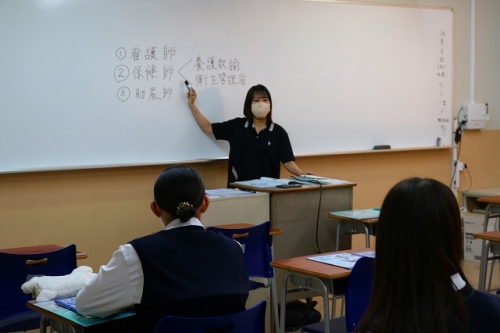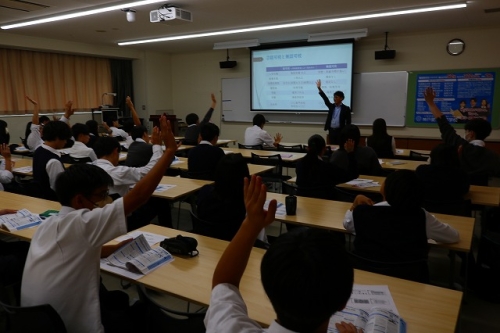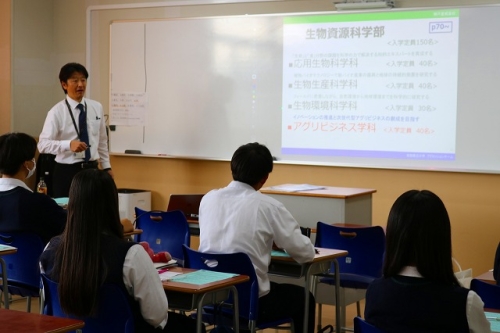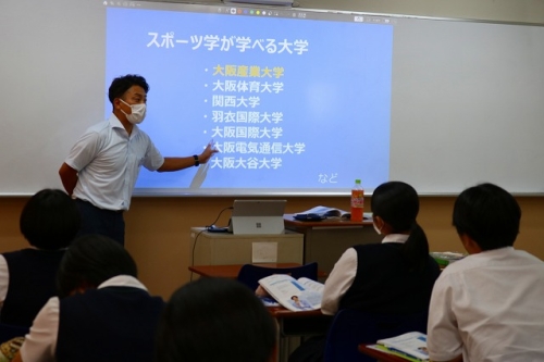 大学進学希望者対象の講話では、国公立大学と私立大学の学費や設備の違い、国公立大学は教員1人に対する学生の数が少なく、しっかりと指導を受けられるということや、合格するために面接や小論文の指導をしっかり受けること、志望理由書の書き方などについて説明をしていただきました。