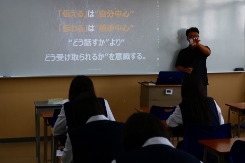 就職希望者対象の講話では、「楽しい話は楽しそうに話し、言葉に感情を込める」「大事な部分を強調し、メリハリをつける」「無駄を省いて簡潔に話せるようにする」といった話し方のコツや面接の際に重要なポイントなど、社会人になるにあたって大切なことを教えていただきました。