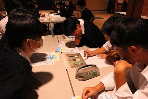 はじめに 六甲アイランドにて大栄環境グループ様より事業の取り組みについての講演をしていただき、クラスごとに課題に対するディスカッションを行いました。