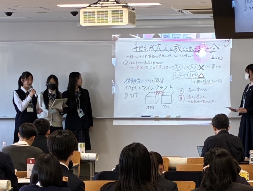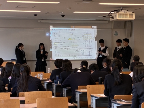 本校生徒は、YKK AP株式会社による「『窓』から考えるサステナビリティ」をテーマとした講演を聴講し、「これからの家づくりがどうなっていけば環境を守ることができるのか」「住まい手である私たち一人ひとりが意識するべきこと」について、他校の生徒5~6人とチームを組んでグループディスカッションを行いました。