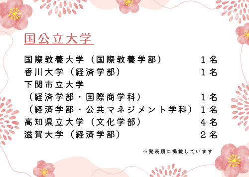 これからも続々と発表がありますが、12月5日(金)現在の国公立大学の合格者数を掲載いたします。