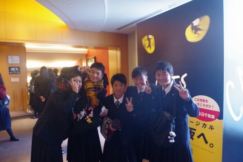 世界各国で大ヒットしたミュージカル「キャッツ」は、1983年に上演されて以来、通算公演回数9500回・総入場者数940万人を超え、驚異的な記録を更新し続ける「奇跡のミュージカル」です。「キャッツ」には「メモリー」という代表曲でも歌われているように「思い出をたどって新しい命」を得るというメッセージが込められ、舞台である都会のゴミ捨て場に捨てられているごみの一つひとつは、人間たちの思い出そのものとの意味が隠されているそうです。客席と舞台が一体となった空間のあちらこちらから猫たちが現れ走り、歌い踊ります。生徒たちは猫の世界に迷い込んでしまったようで、終演後も感動と興奮でアンコールの拍手は鳴りやまなかったほどです。本校は生徒の健全な成長のために、より一層の情操教育の充実に努めてまいります。来年度の芸術鑑賞会は、音楽鑑賞会を予定しています。