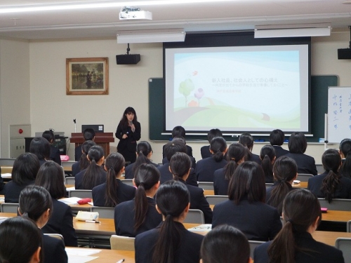 (財)兵庫県雇用開発協会 ひょうご・しごと情報広場 若者しごと倶楽部の方をお招きし、「知って役立つ労働法 Q&A(厚生労働省)」をテキストに「新入社員、社会人としての心構え」との内容で講演を頂きました。その一部を紹介しますので、在校生のみなさんは今後の進路の参考にしてください。