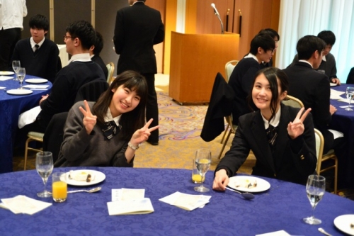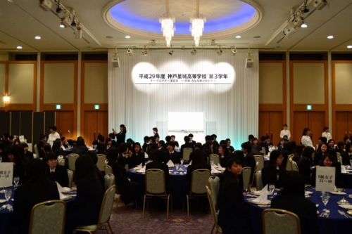 また、最後には高校3年間の思い出のビデオや、編集されたテーブルマナー当日の映像、さらに、生徒から先生へ感謝の気持ちを伝えるサプライズ映像も上映されました。
