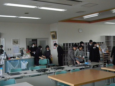 12月28日(水)、御用納めの本日の午後、3年生の大学進学者約40名が集まり、受験勉強でお世話になったライブラリーに感謝の気持ちを込めて、大掃除を行いました。