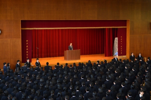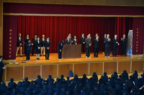 新入生の皆さん、ご入学おめでとうございます。皆さんがこれから神戸星城高校生として過ごしていく3年間は、大人になるためのとても大切な時期です。毎日忙しく過ぎていく時間の中で、自分の思い通りにいかず投げ出したくなったり、困ったりしたことがあれば、いつでも私たち在校生に相談してください。私たちと共に、楽しく最高の高校生活にしていきましょう。